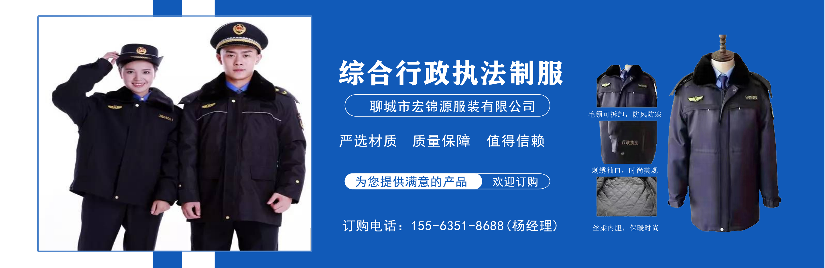 綜合行政執法制服,交通執法服裝,應急管理執法標志服,市場監督管理標志服,農業執法服裝,生態環境保護制服,文化市場執法服,城管標志服裝廠,衛生監督制服,六部門標志服廠家-聊城市宏錦源服裝有限公司 公司簡介/ ABOUT
